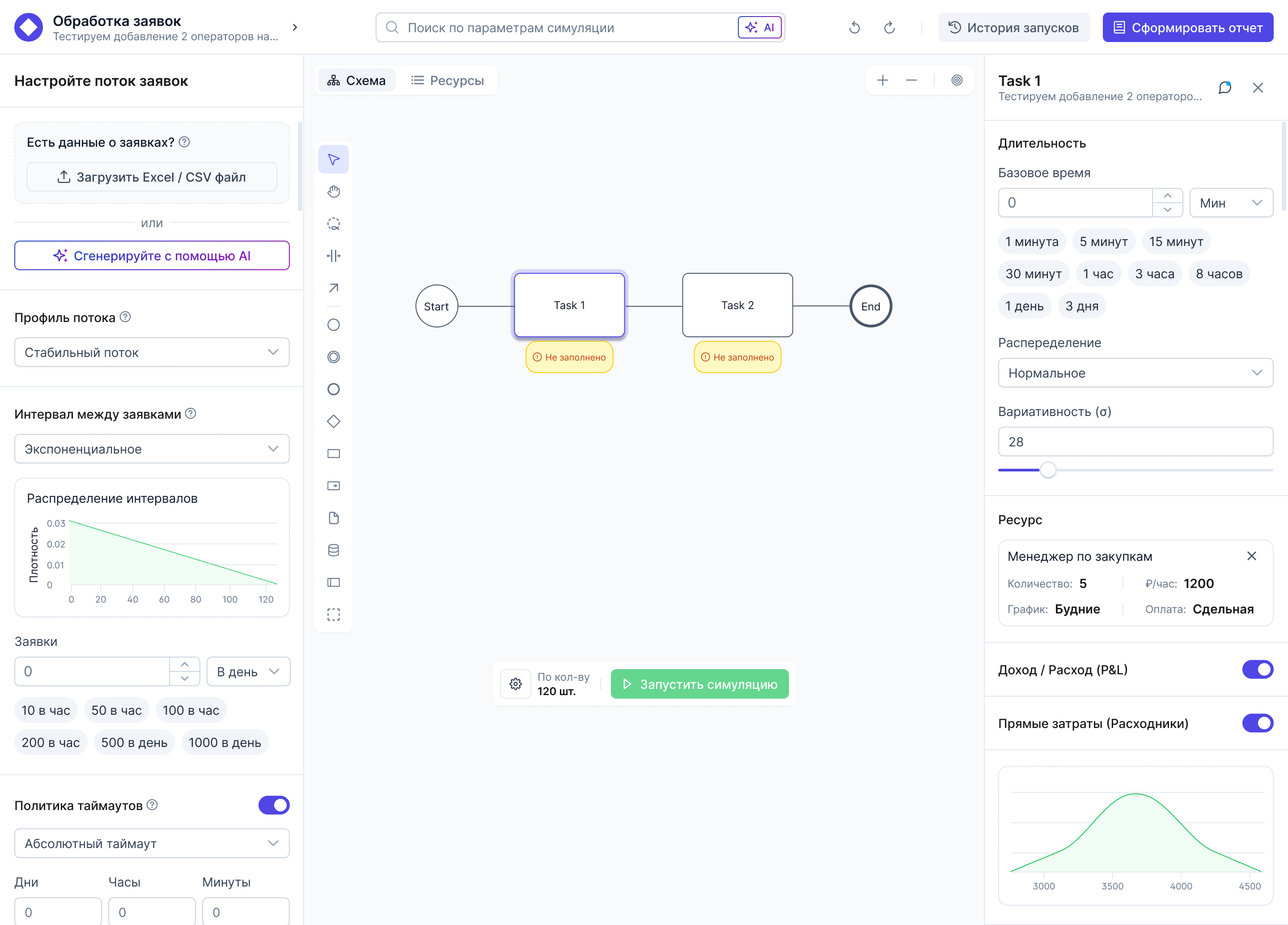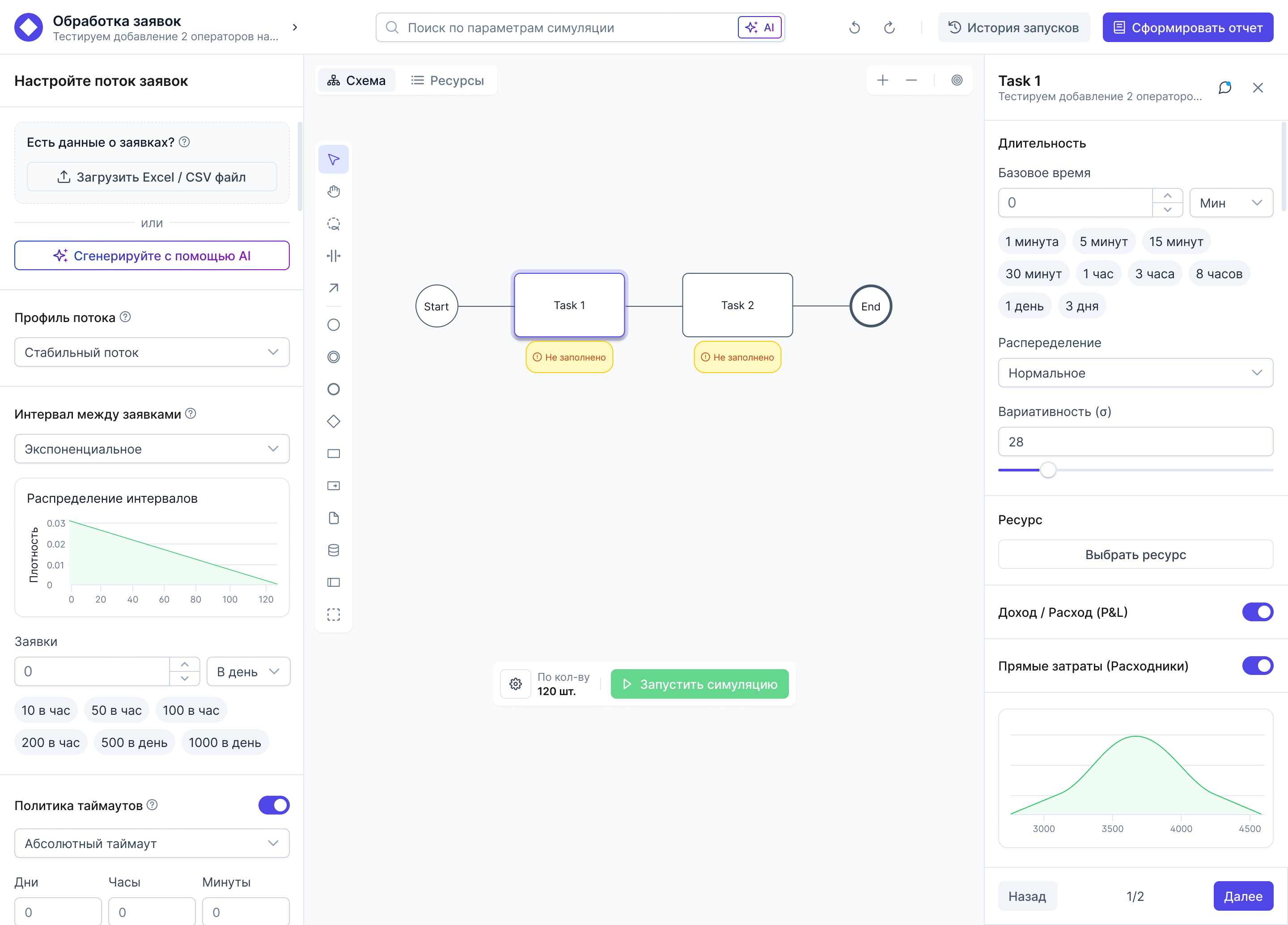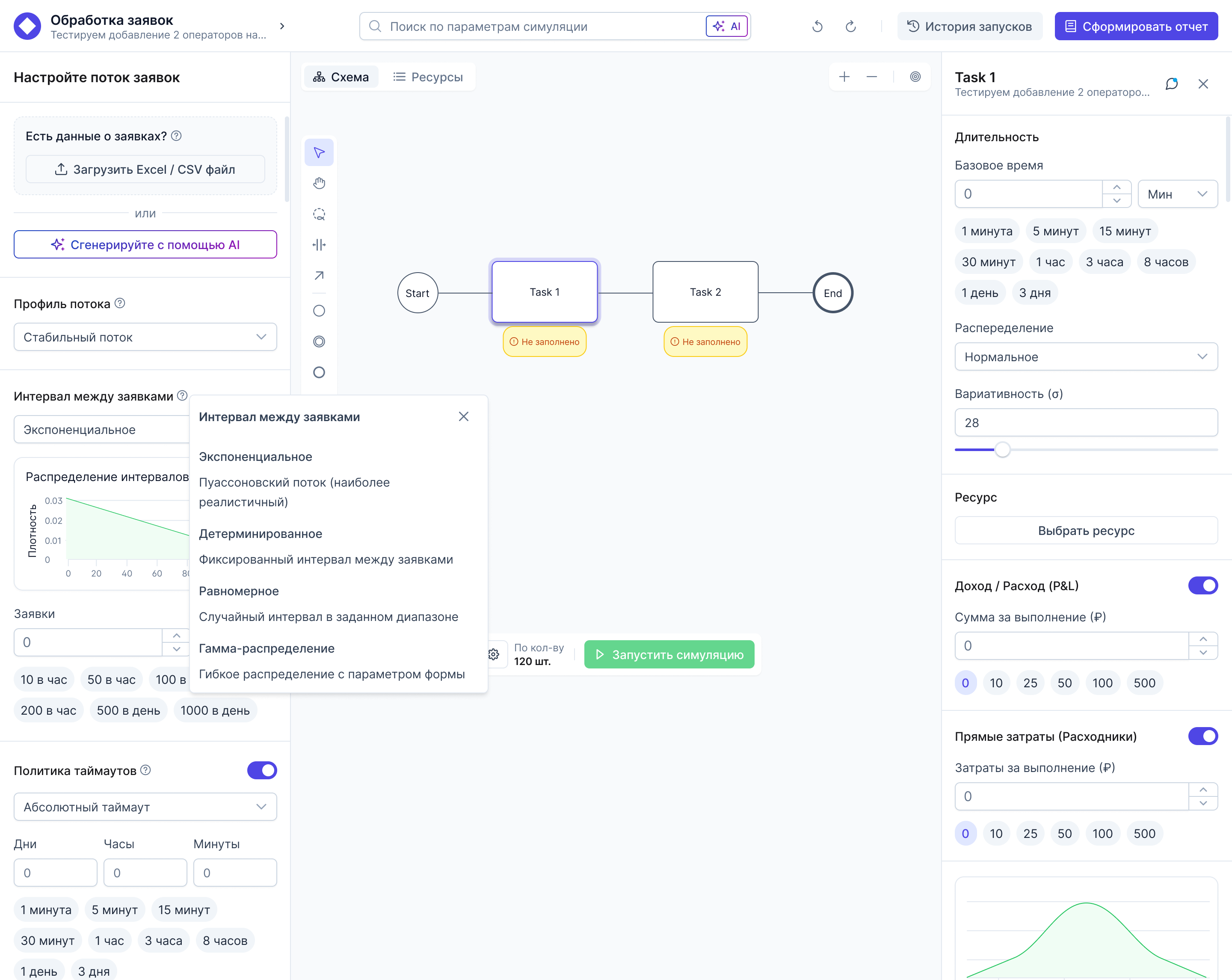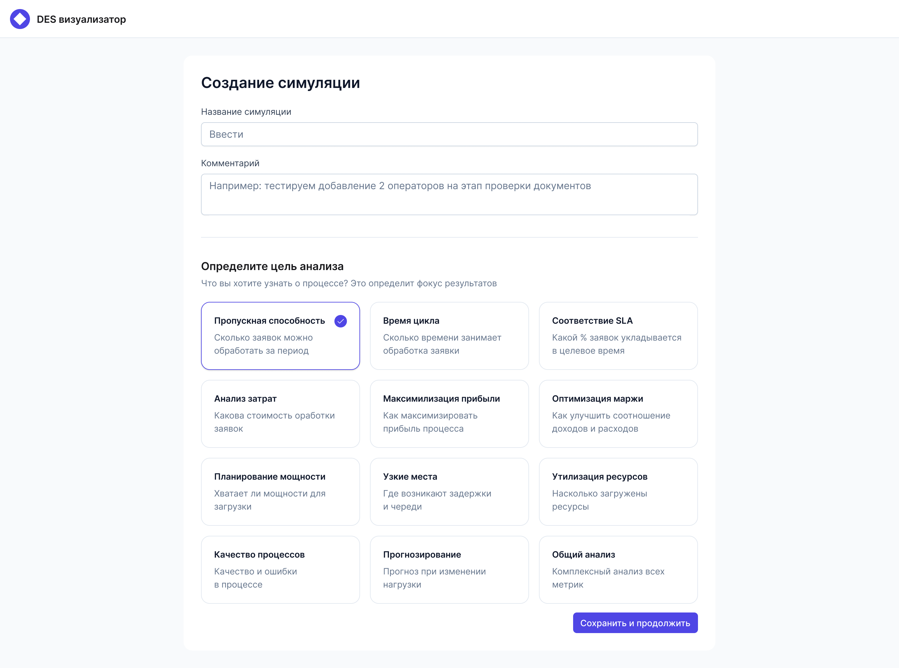 - Улучшить пользовательский опыт при настройке моделирования процесса