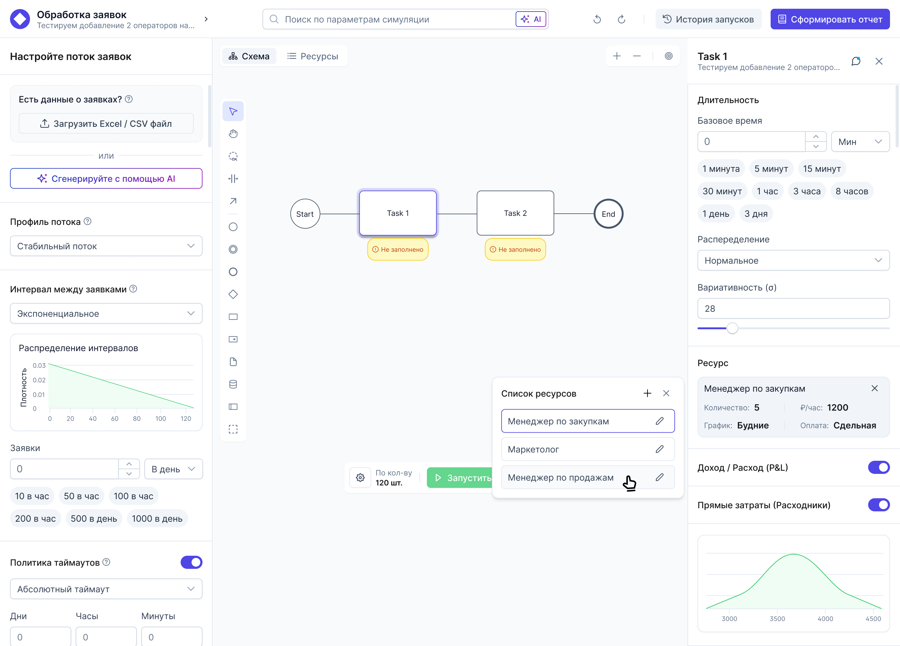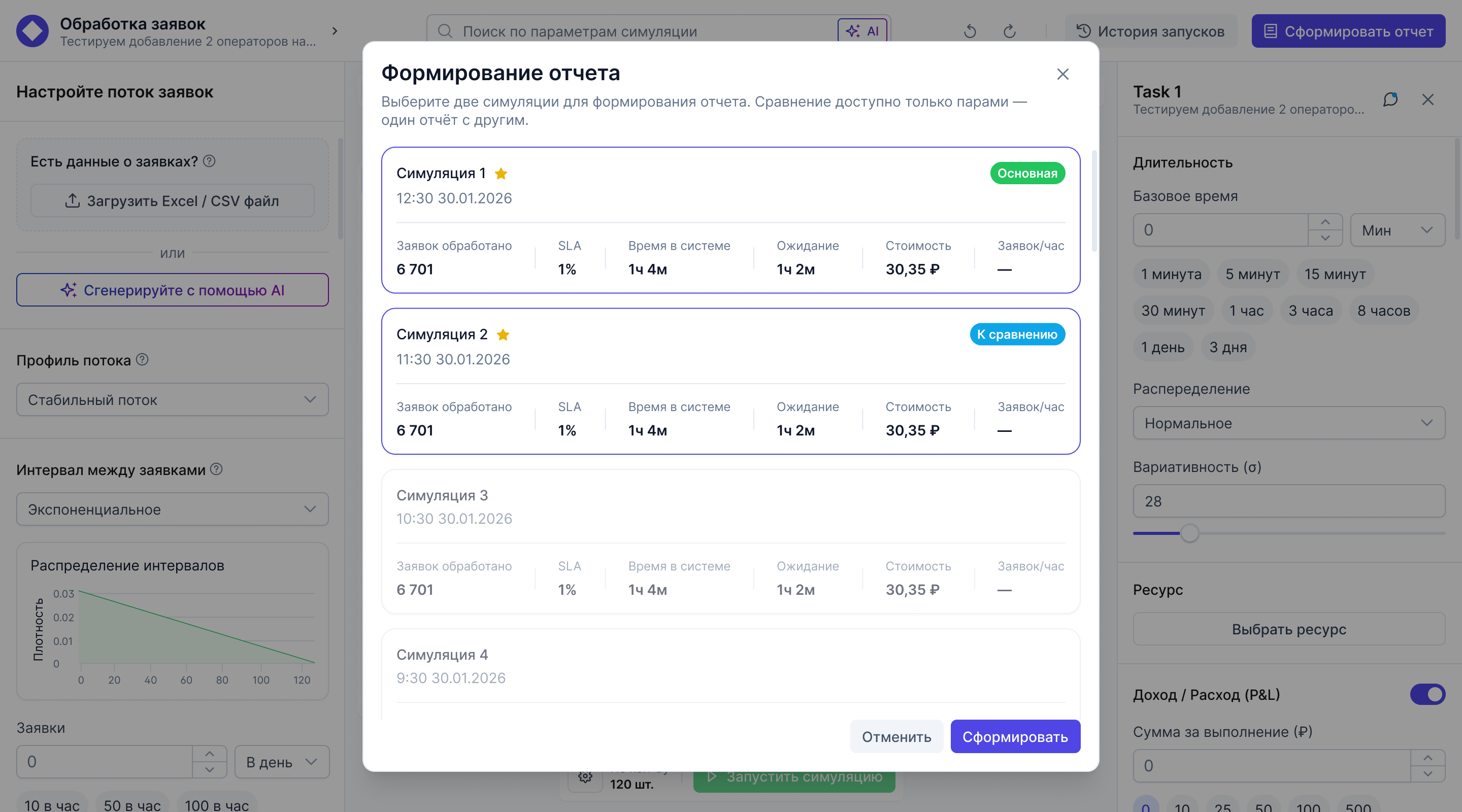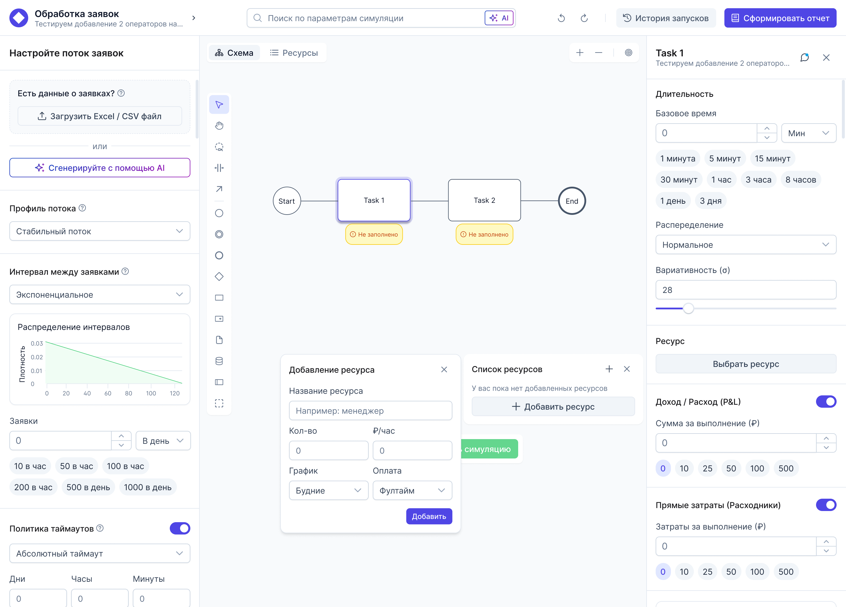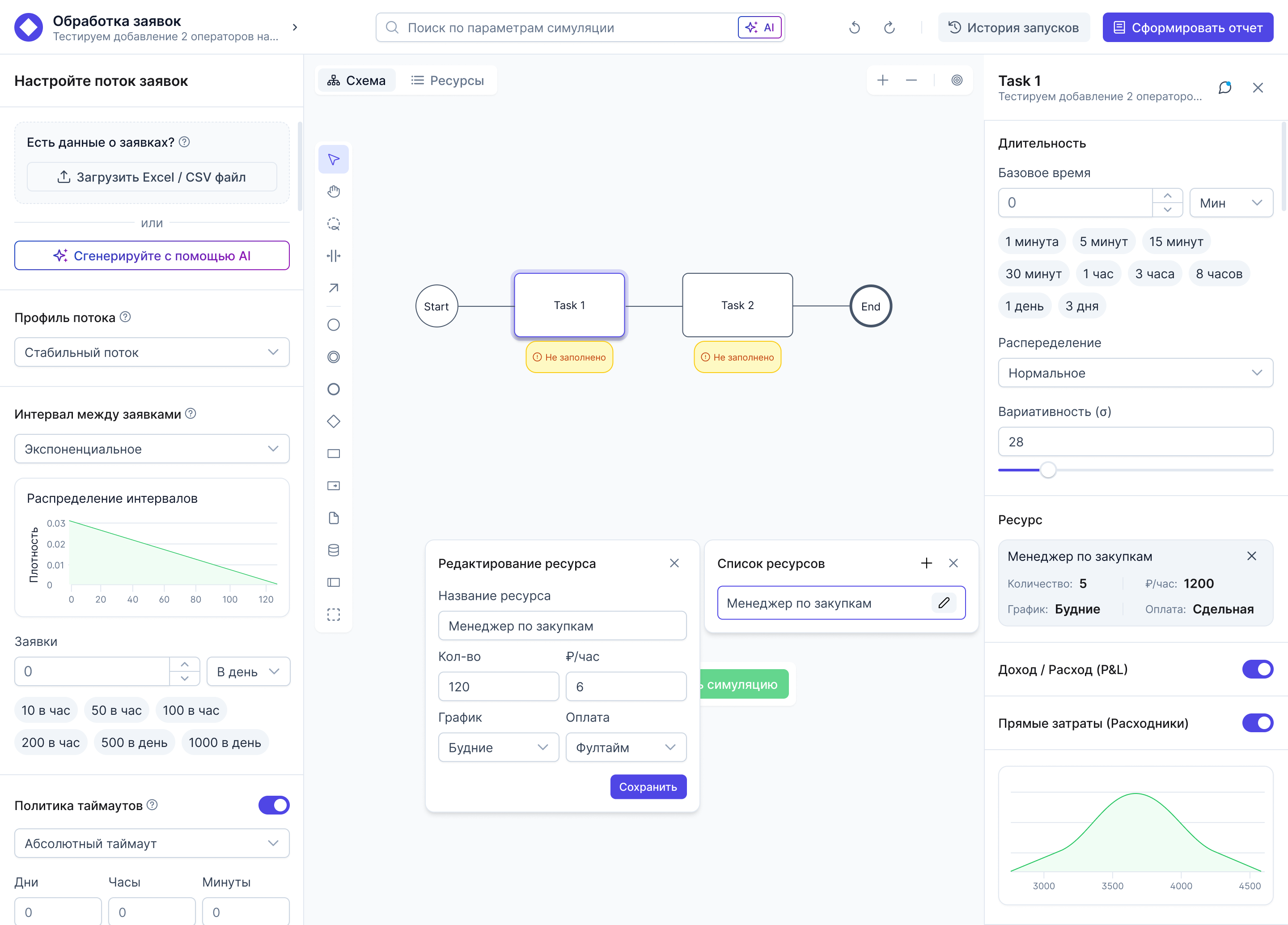 - Улучшить пользовательский опыт при настройке моделирования процесса