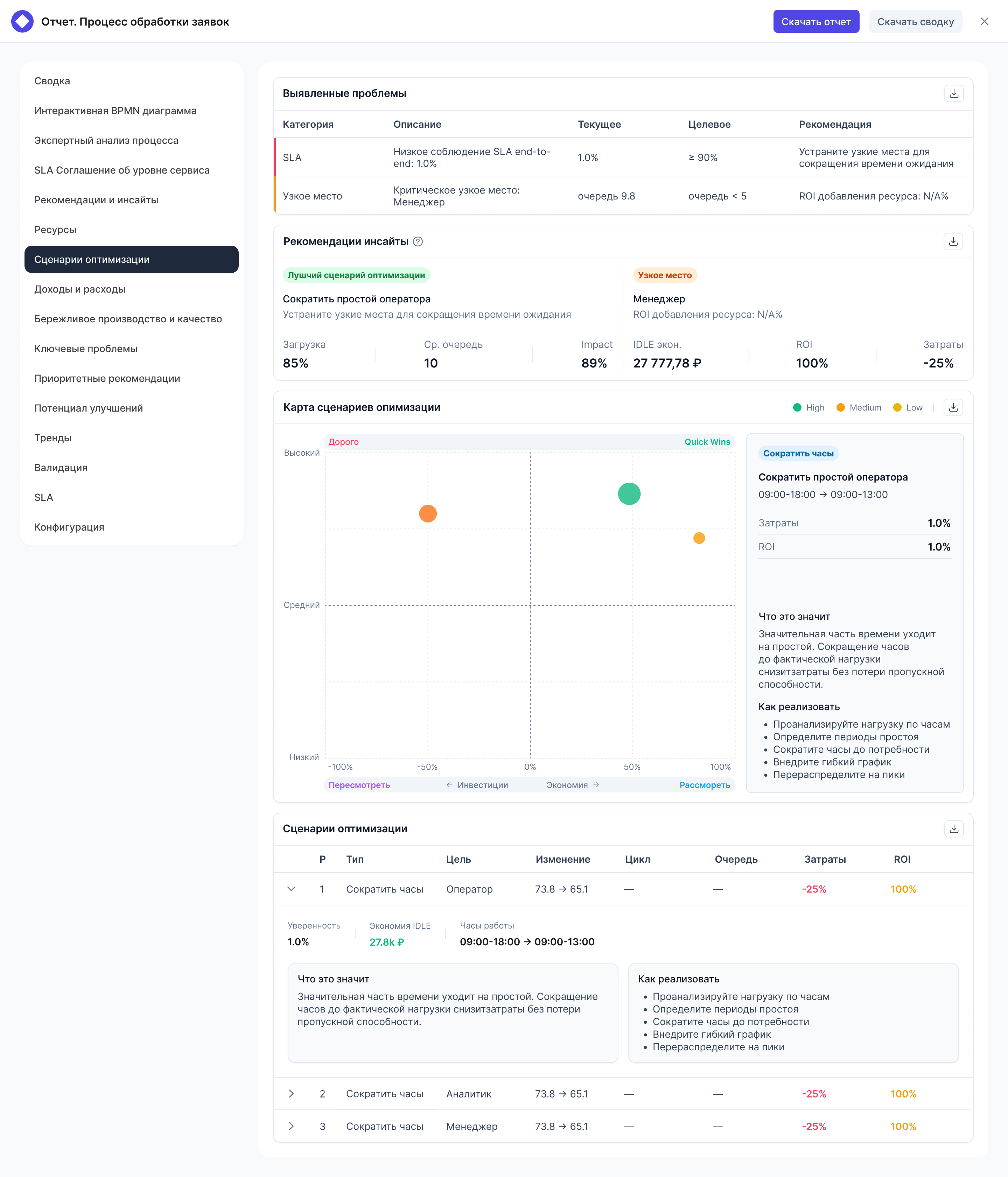 Нам предстояло добавить новую функциональность «Анализ узких мест» в существующий продукт компании. У заказчика было много идей, часть из которых уже даже была реализована в MVP, но интерфейс казался перегруженным и запутанным.