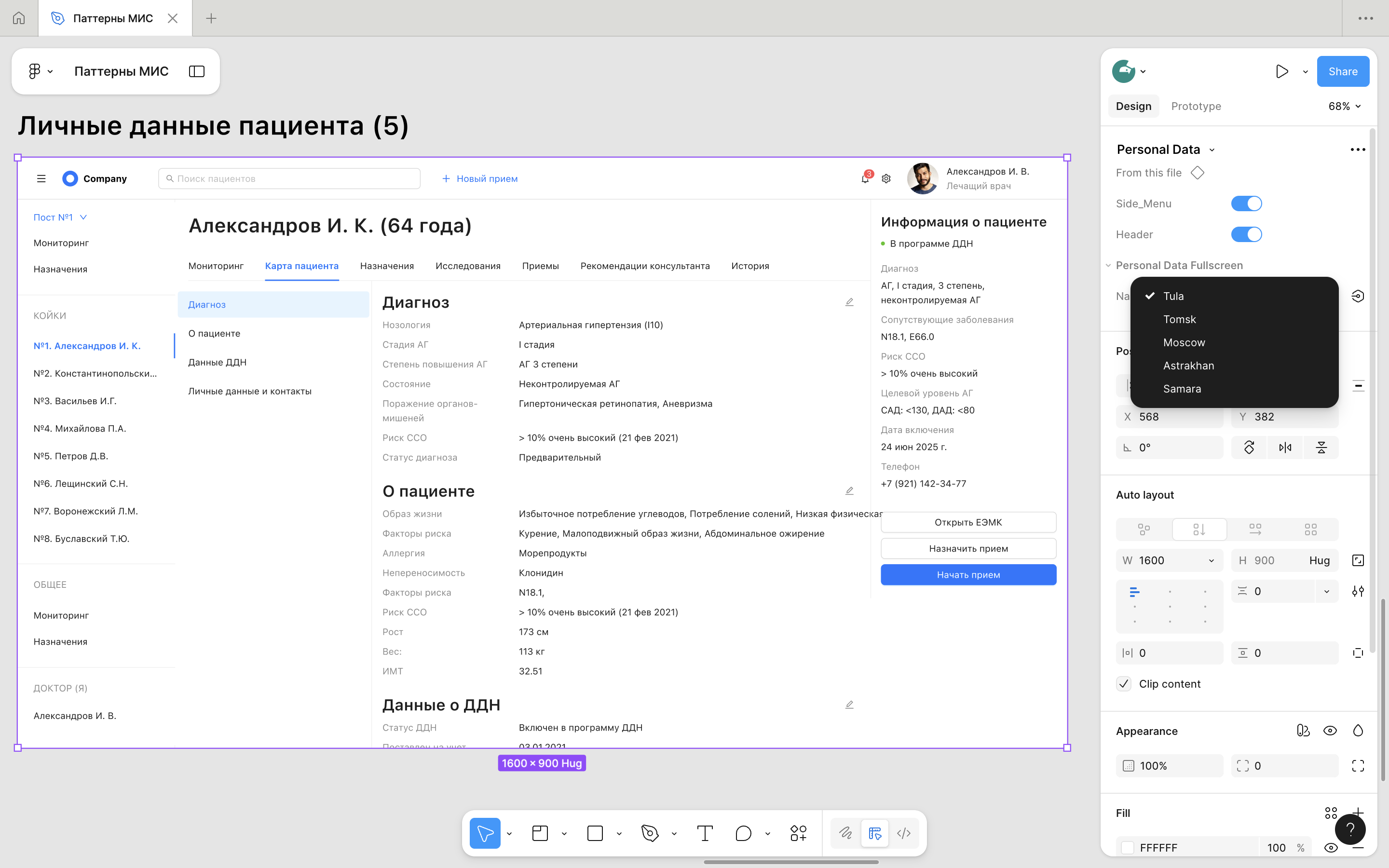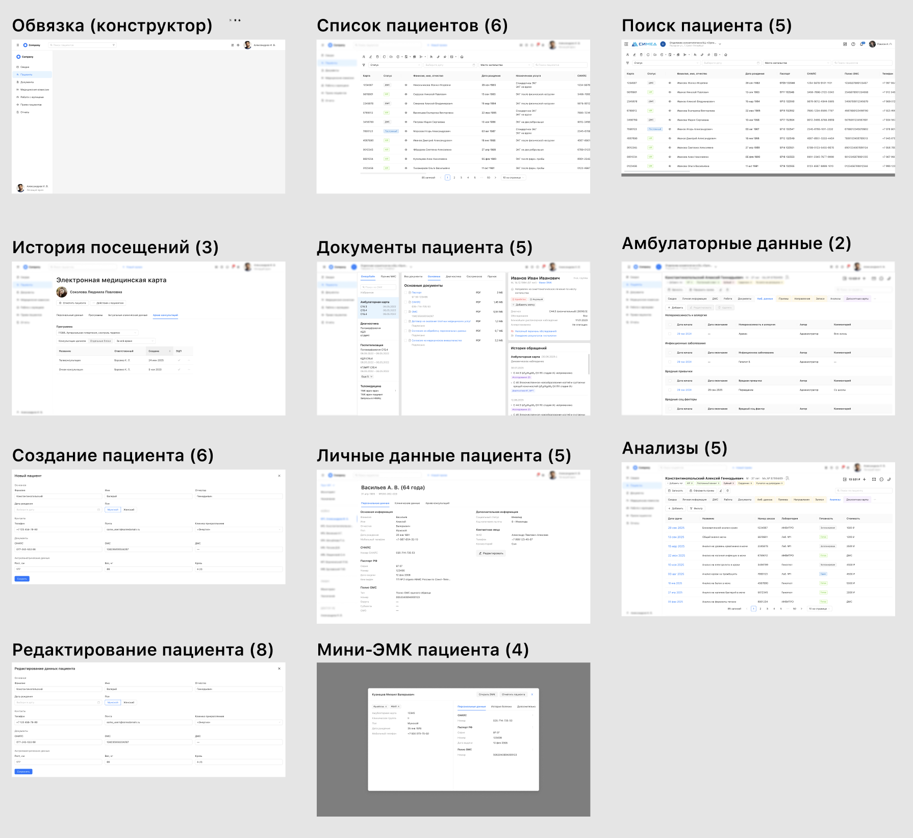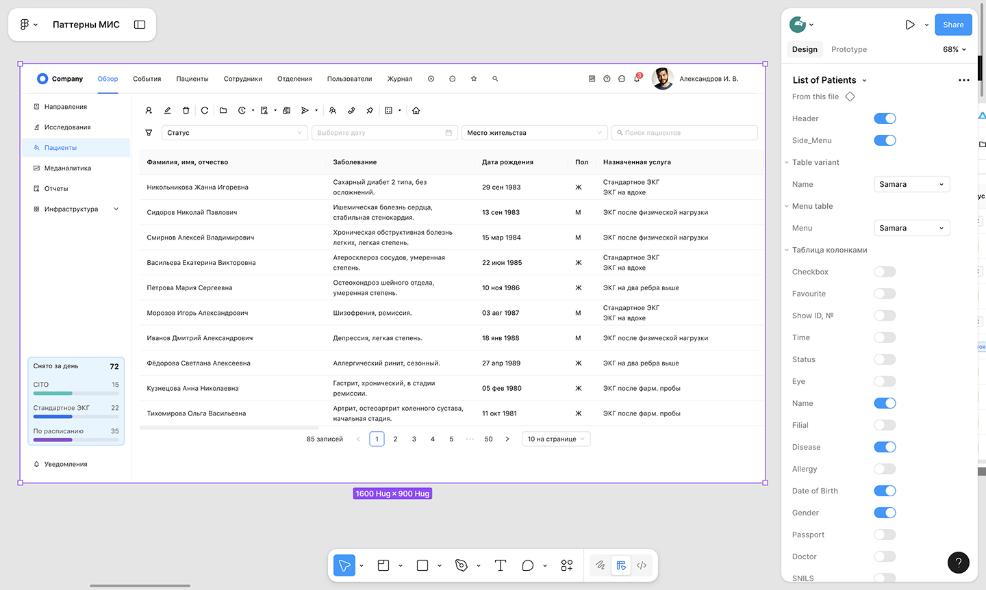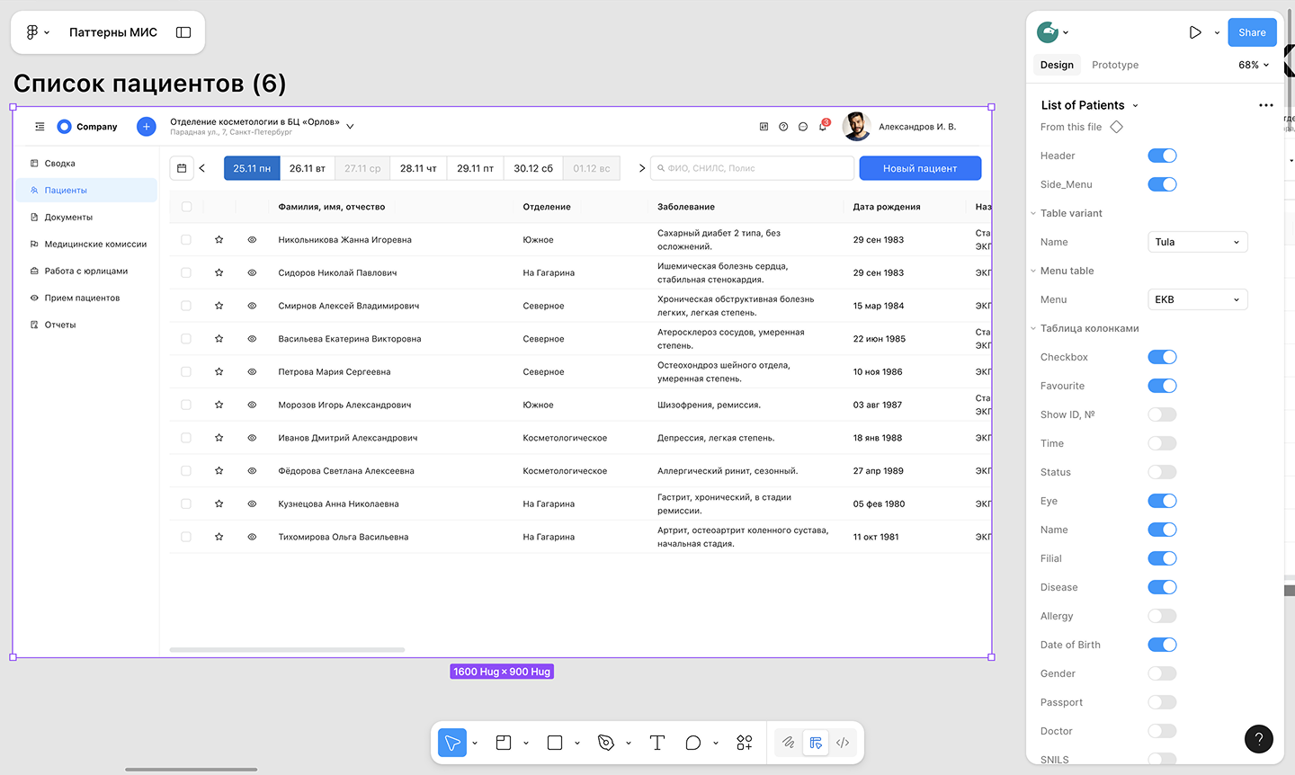 Мы собрали в Фигме конструктор медицинских интерфейсов. Он состоит из наших лучших дизайн-решений для медицинских информационных систем. Теперь, когда в «Собаку Павлову» за интерфейсом приходят разработчики из медицины, мы ищем и собираем концептуальные решения в этом конструкторе. Это первый шаг в дизайне МИС.